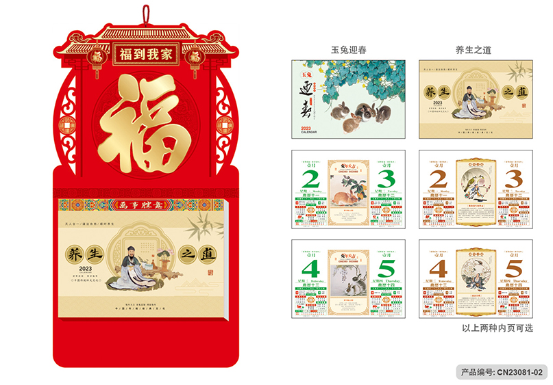 月历分类:中国文化择吉九开双日历 CN23081-01至CN23081-03(图片及画面比例仅作参考,一切以实物样品为准)