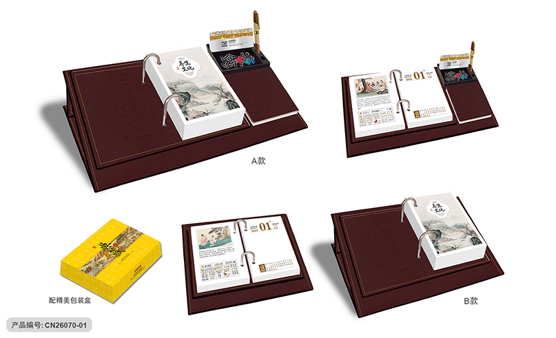 月历分类:豪华皮座多功能记事单日历 CN26070-01至CN26070-02 (图片及画面比例仅作参考,一切以实物样品为准)