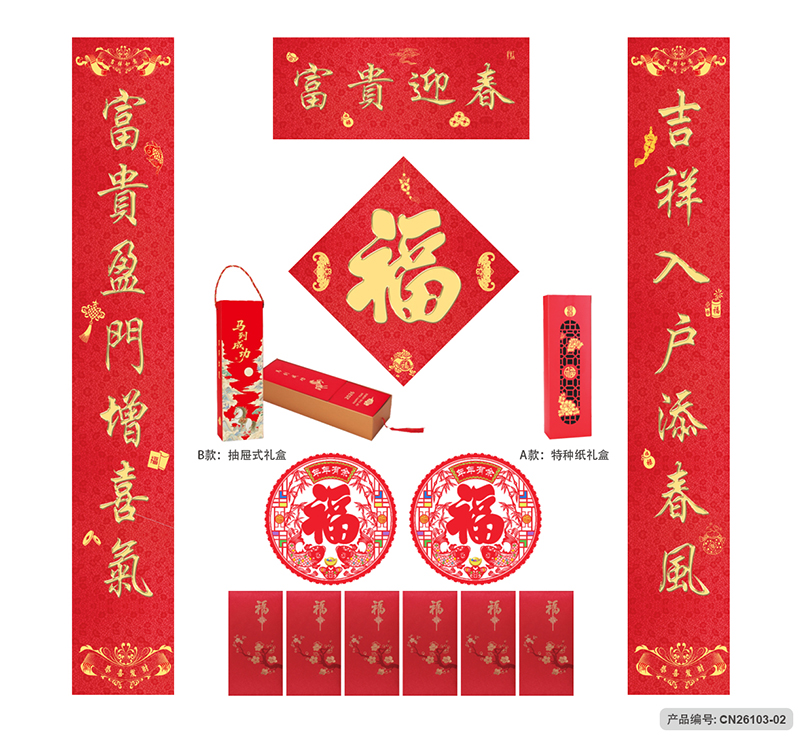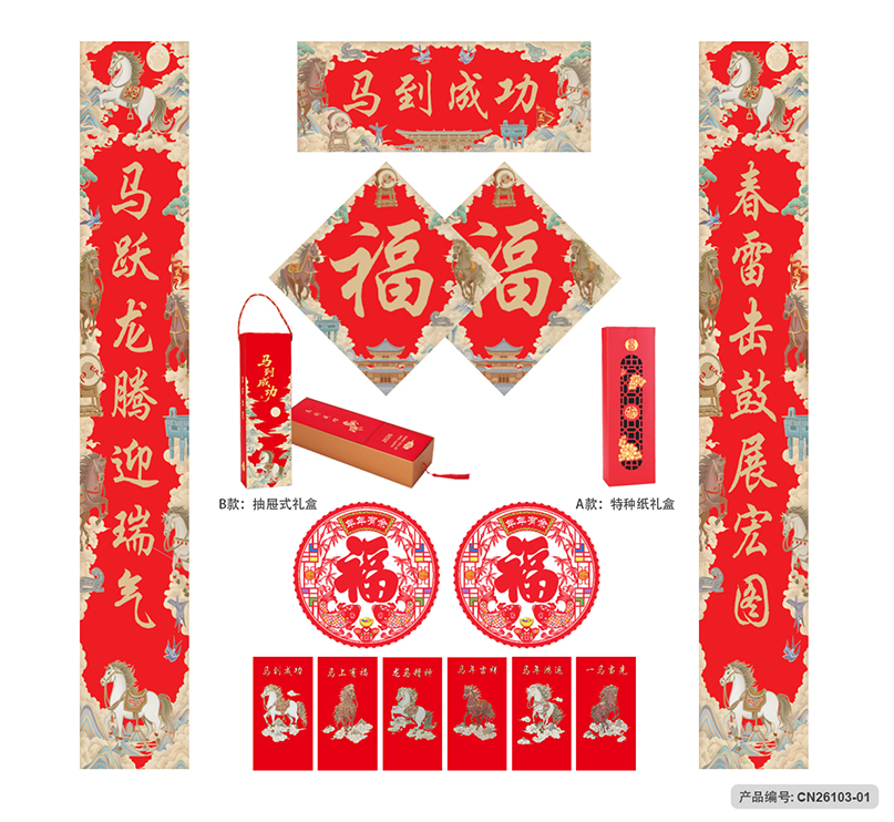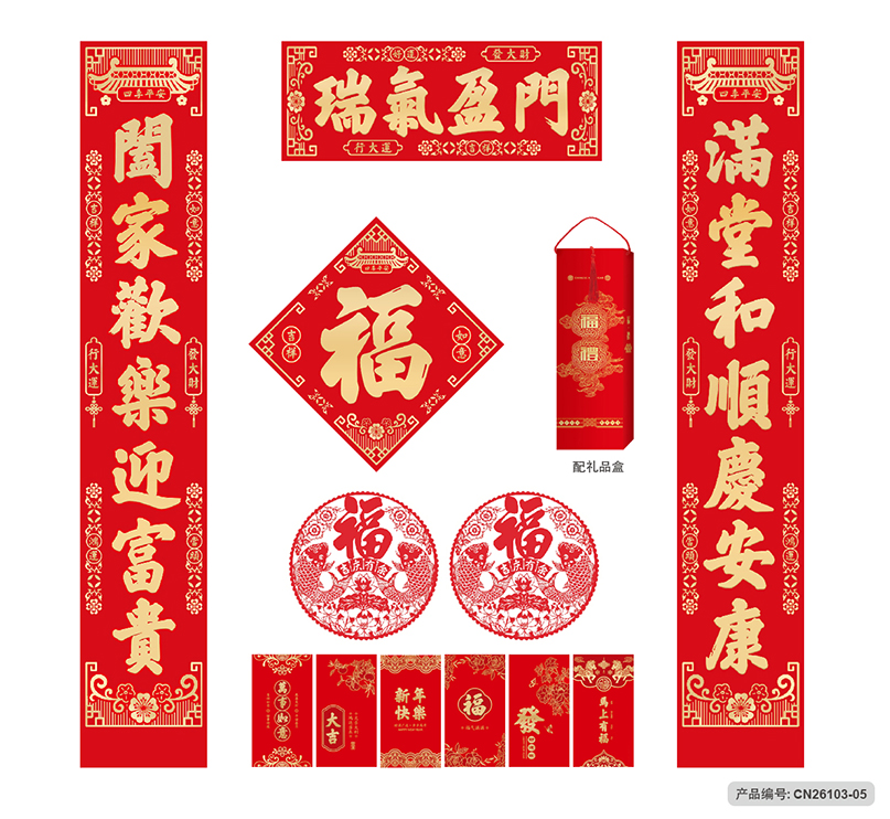 月历分类:迎春接福对联利是大礼包 CN26103-01至CN26103-05 (图片及画面比例仅作参考,一切以实物样品为准)