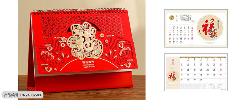 月历分类:荧光精雕工艺台历 CN24002-01至CN24002-04 (图片及画面比例仅作参考,一切以实物样品为准)