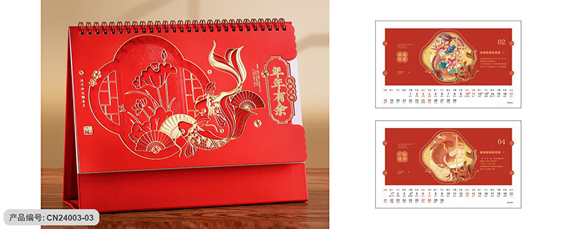 荧光红喜庆精雕工艺台历