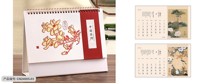 月历分类:珍藏镶皮工艺台历 CN24005-01至CN24005-04 (图片及画面比例仅作参考,一切以实物样品为准)