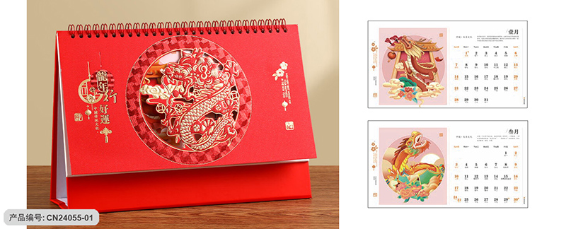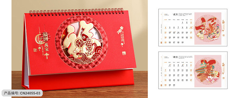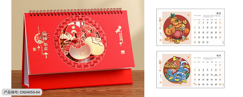 月历分类:触感红精雕工艺台历 CN24055-01至CN24055-04 (图片及画面比例仅作参考,一切以实物样品为准)