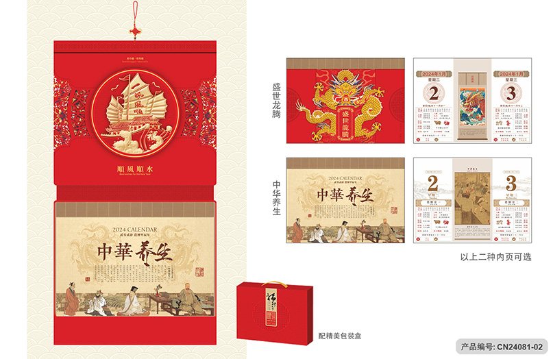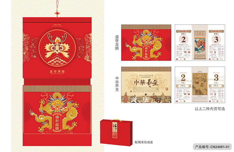月历分类:豪华创新工艺九开双日历 CN24081-01至CN24081-03 (图片及画面比例仅作参考,一切以实物样品为准)