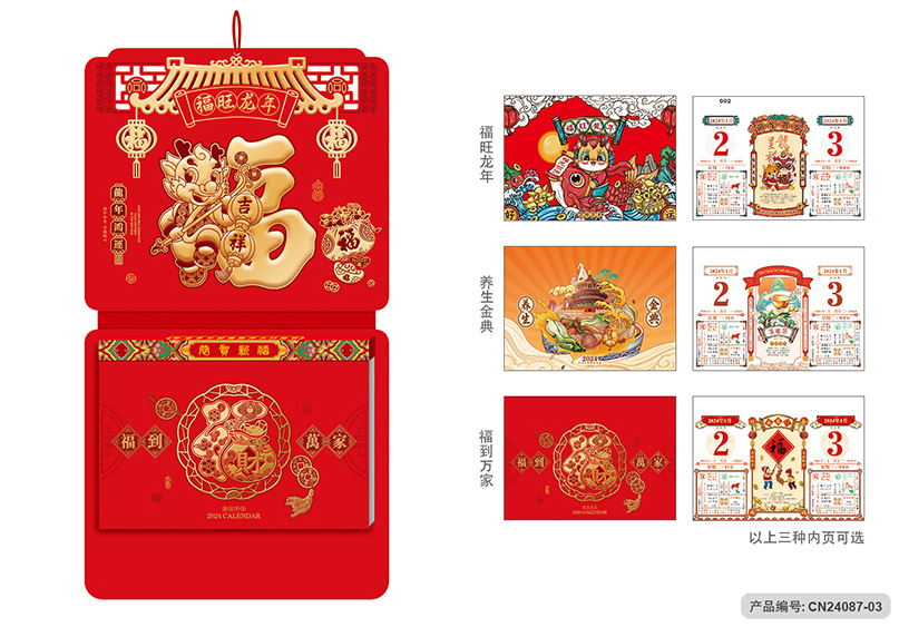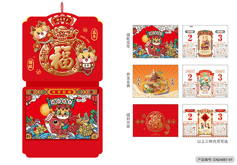 月历分类:创新工艺择吉九开双日历 CN24087-01至CN24087-03 (图片及画面比例仅作参考,一切以实物样品为准)