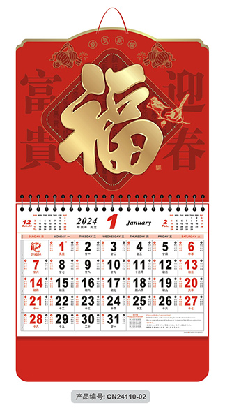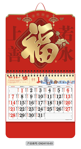 月历分类:六开中国红创意镶金吊牌 CN24110-01至CN24110-04 (图片及画面比例仅作参考,一切以实物样品为准)