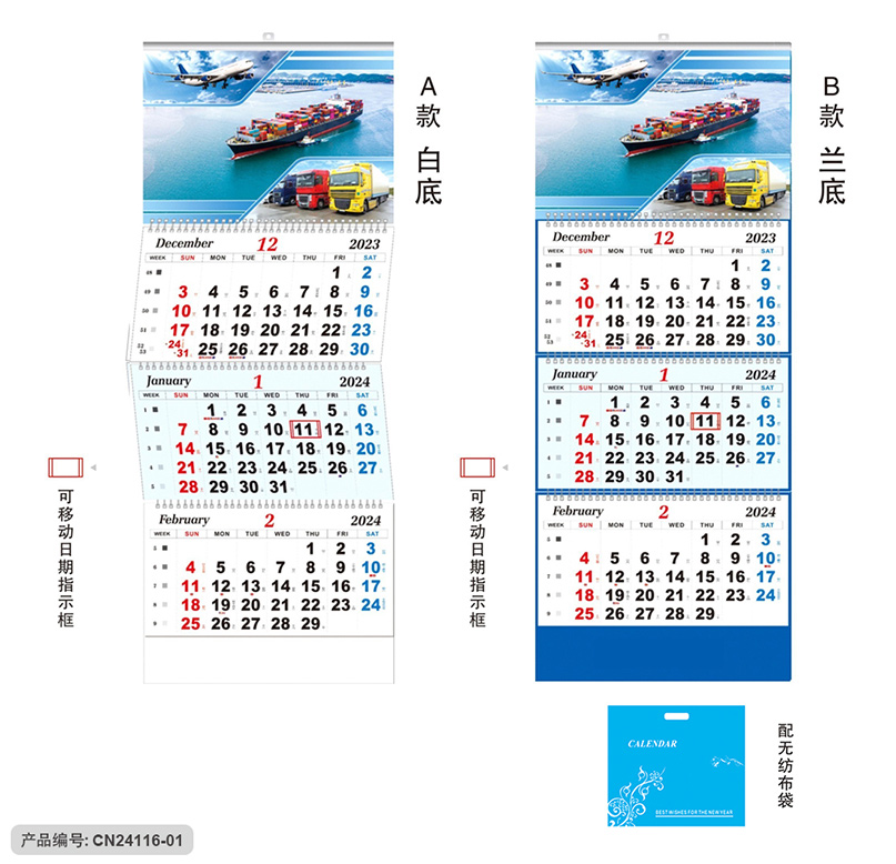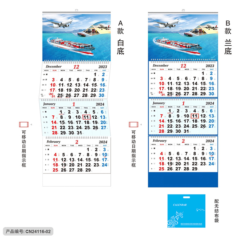 月历分类:航运36张月历吊牌 CN24116-01至CN24116-02 (图片及画面比例仅作参考,一切以实物样品为准)