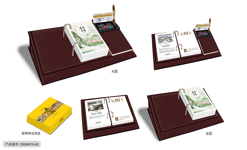 月历分类:豪华皮座多功能记事单日历 CN26070-01至CN26070-02 (图片及画面比例仅作参考,一切以实物样品为准)