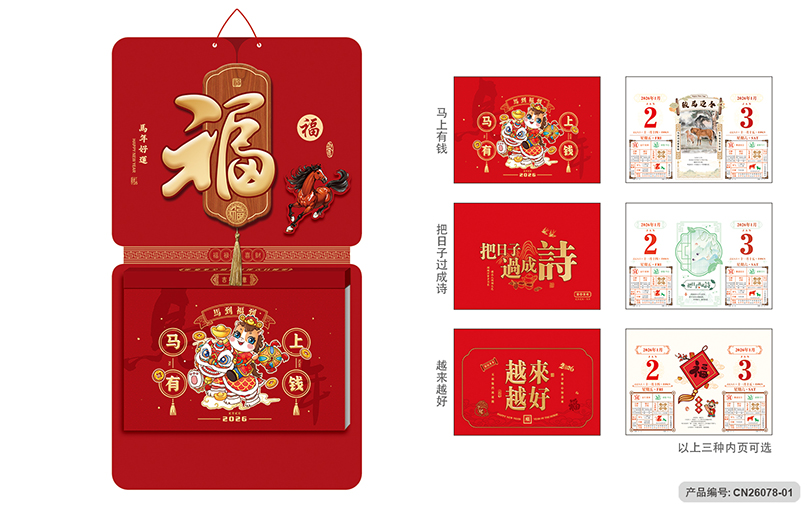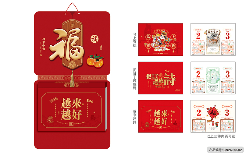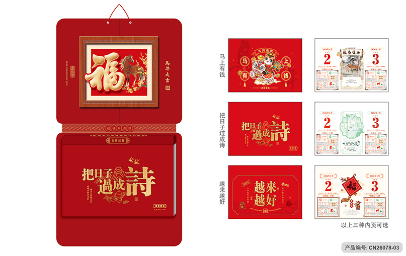 月历分类:创新工艺择吉九开双日历 CN26078-01至CN26078-03 (图片及画面比例仅作参考,一切以实物样品为准)