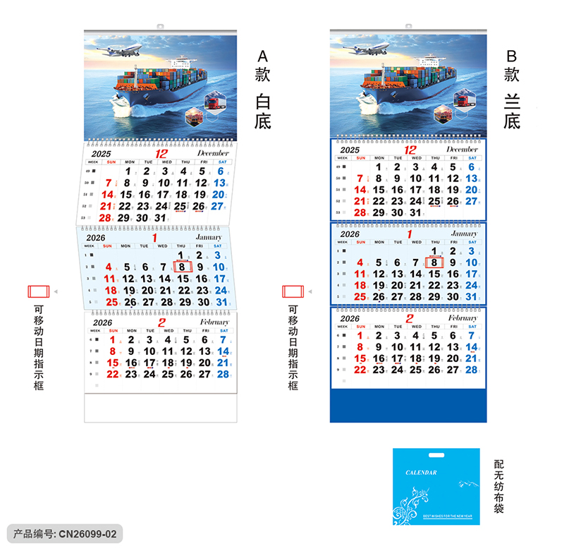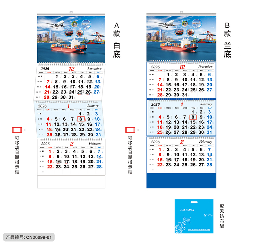 月历分类:航运36张月历吊牌 CN26099-01至CN26099-04 (图片及画面比例仅作参考,一切以实物样品为准)