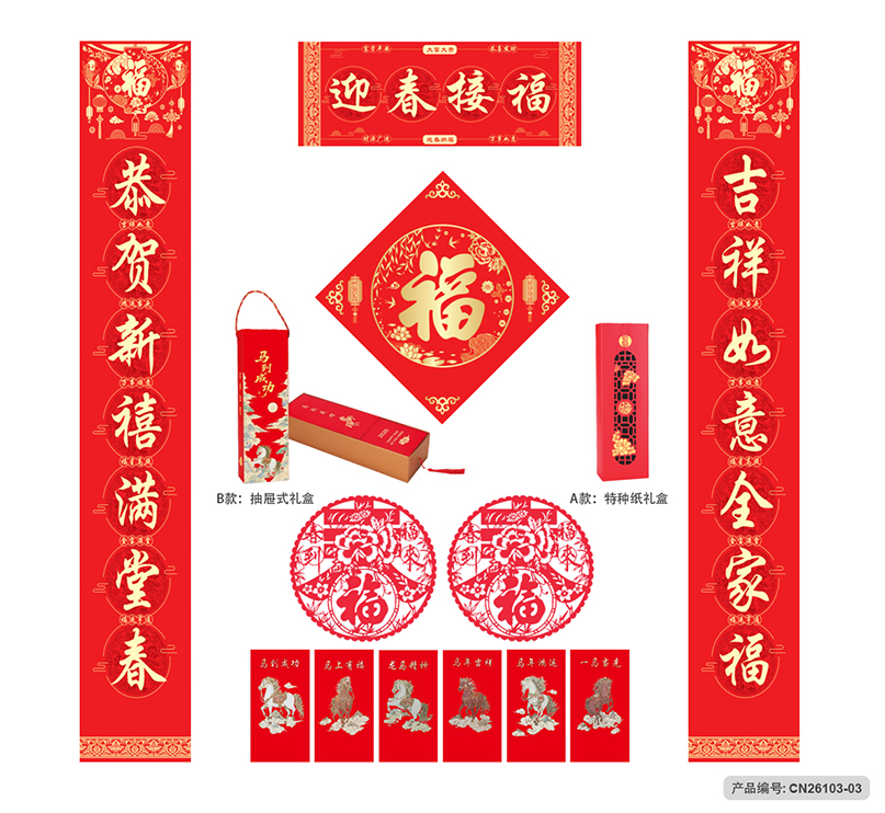 月历分类:迎春接福对联利是大礼包 CN26103-01至CN26103-05 (图片及画面比例仅作参考,一切以实物样品为准)